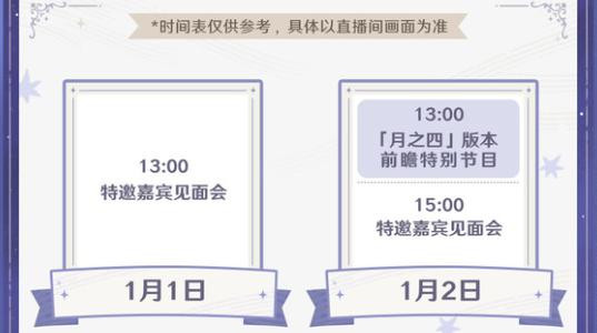 所以想要看6.3版本前瞻直播的玩家可以提前记一下开播日期哦,是在1月2号的下午1点钟,同时如果你没有时间看前瞻直播的话,果子也会第一时间把直播的内容以及原石兑换码分享给大家。